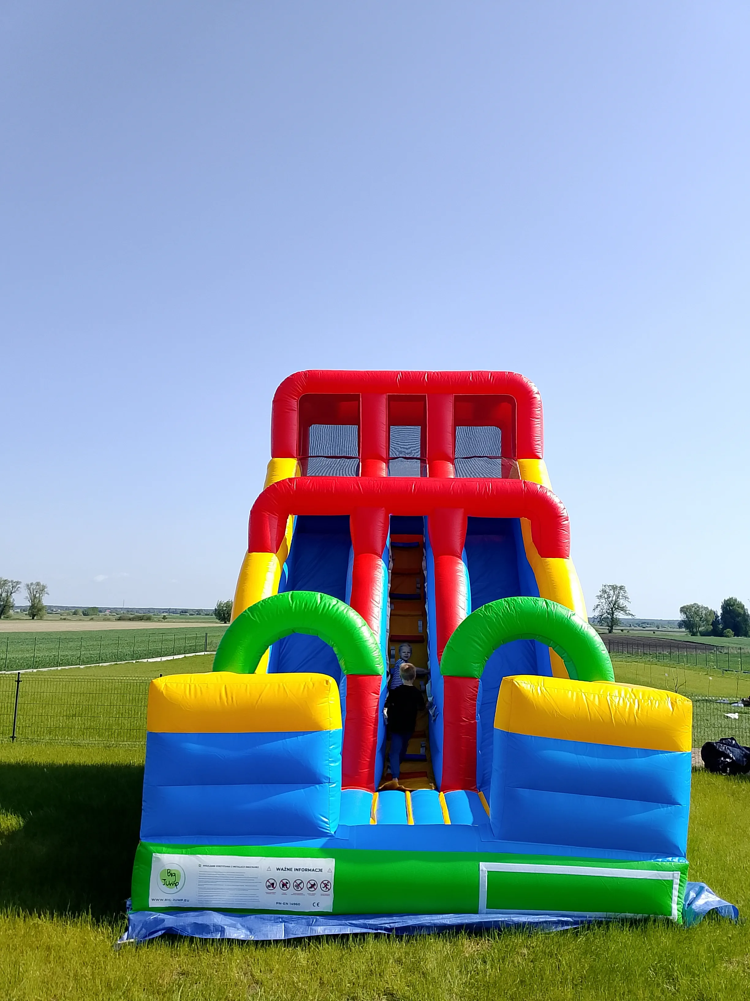 „Kolorowy Ślizg” to większa zjeżdżalnia dmuchana — idealna na festyny, pikniki i większe imprezy, gdzie dzieci mają dużo energii i potrzebują więcej przestrzeni do zabawy. Dzięki większym gabarytom i wyższej dopuszczalnej liczbie użytkowników sprawdzi się szczególnie tam, gdzie jest większy ruch.