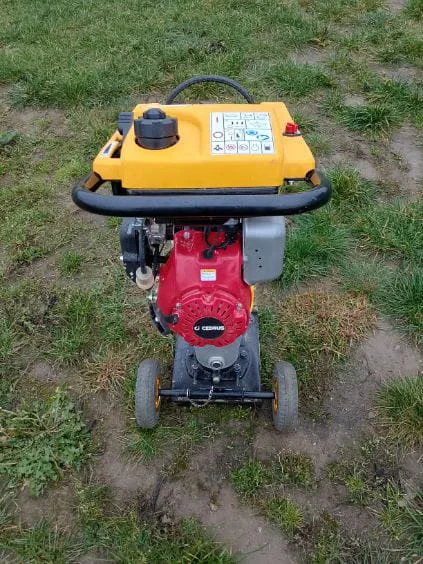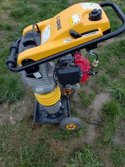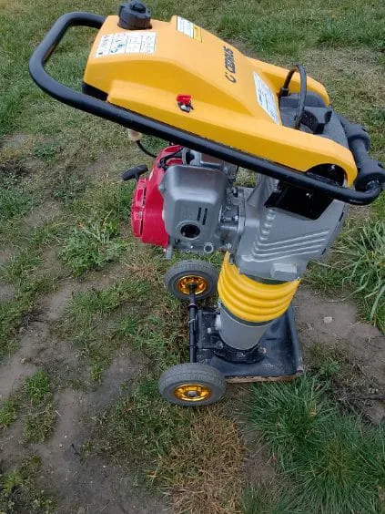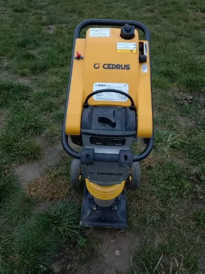 Stopa wibracyjna Cedrus ST 01 do zagęszczania wąskich wykopów, stref przy krawężnikach i miejsc trudno dostępnych. Koła transportowe ułatwiają przemieszczanie na budowie.